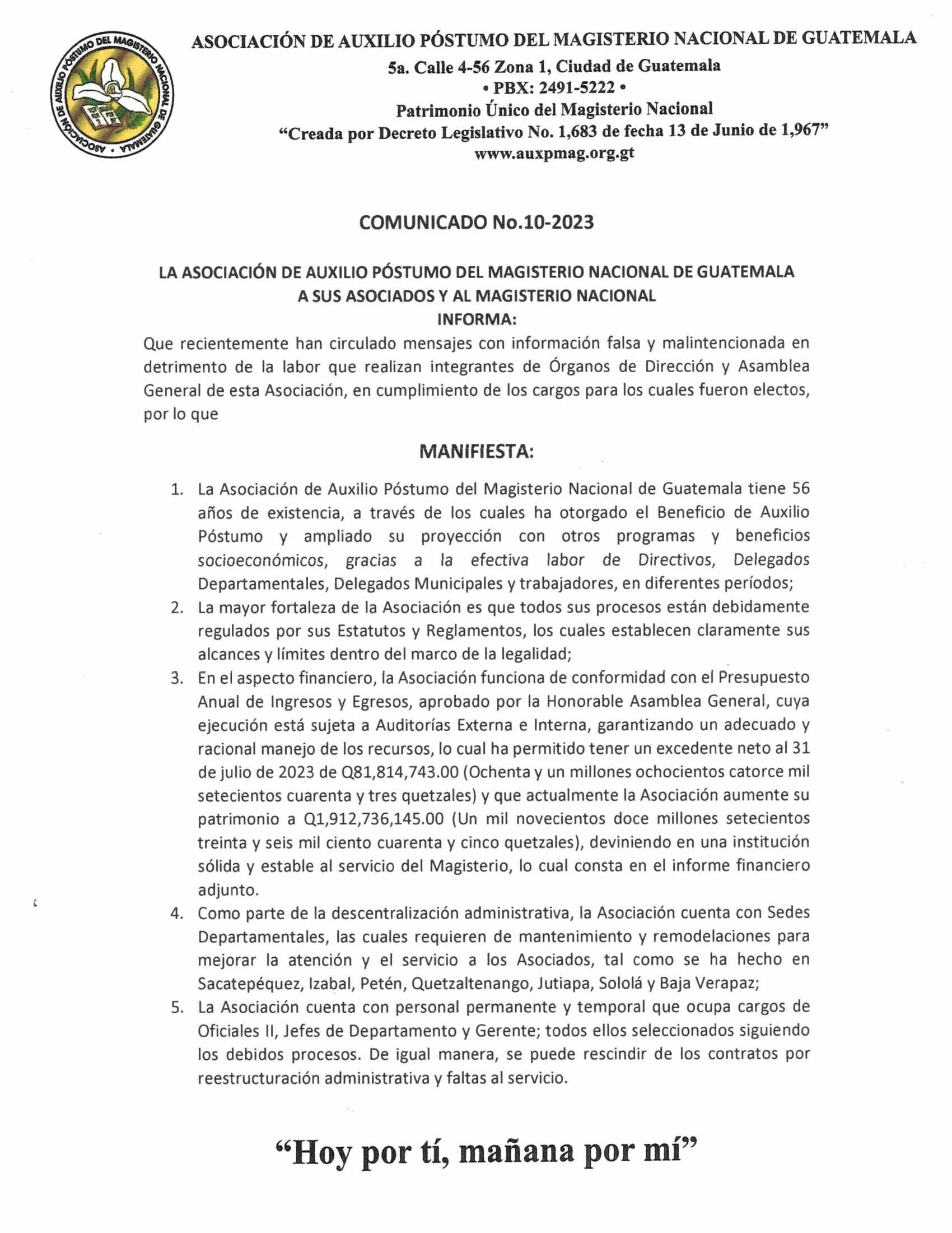 La Asociación de Auxilio Póstumo del Magisterio Nacional de Guatemala informo: